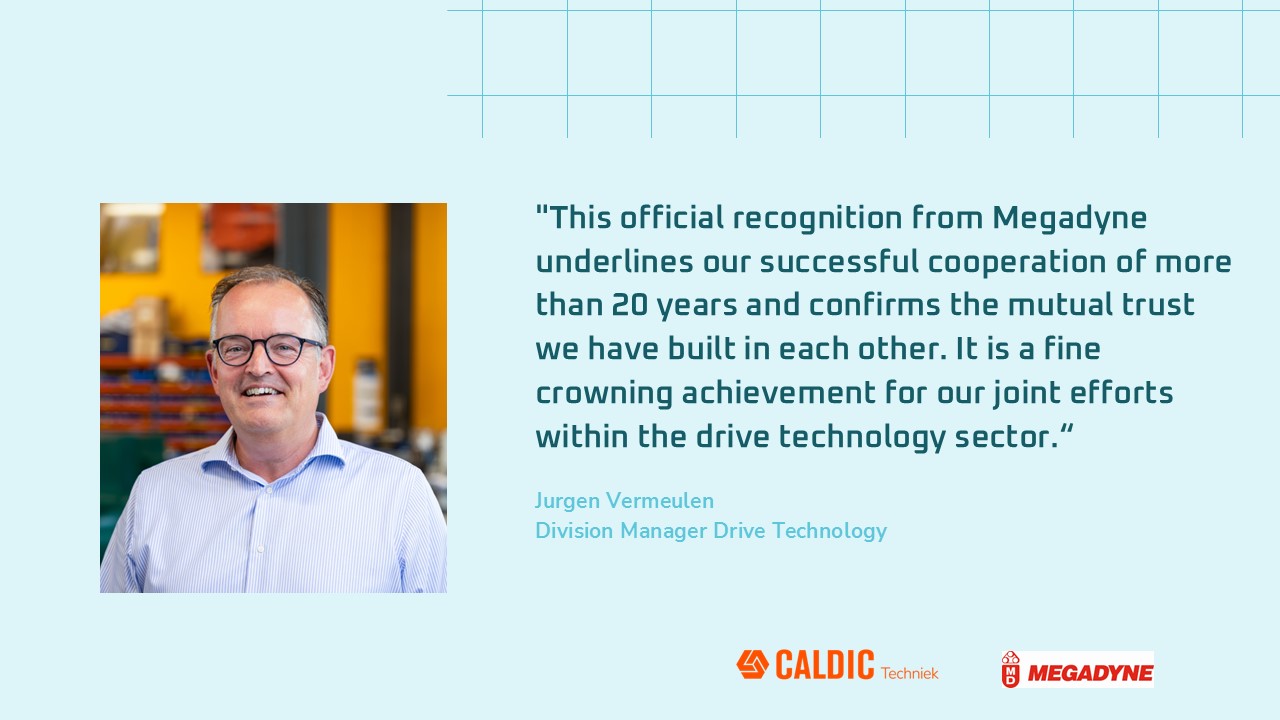 For more than 20 years Caldic Techniek and Megadyne have been successfully working together on technical solutions for a variety of industrial applications. The official certification is therefore a confirmation of the quality, reliability and expertise we have offered our customers for many years.