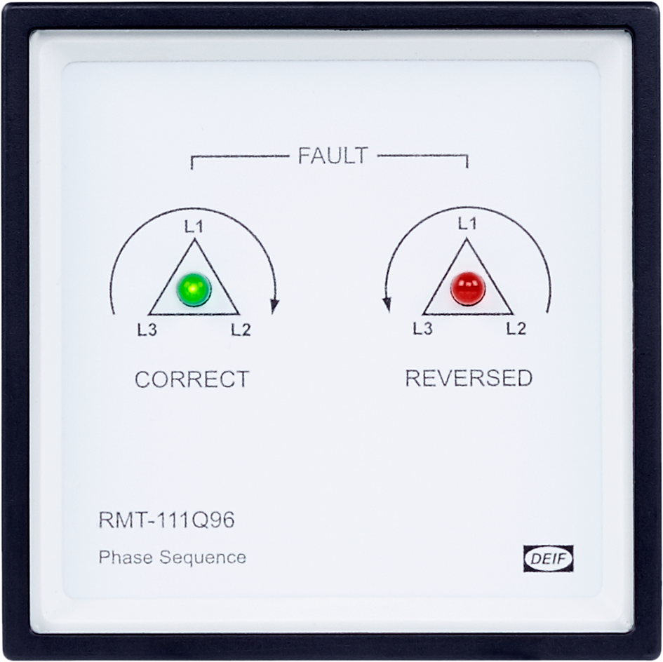 De LSQ van DEIF is een kosteneffectieve synchronoscoop die de fase- en spanningsovereenstemming tussen twee ingangsspanningen (generator en stroomrail) meet en aangeeft. De lampjes gaan om beurten branden als alle fasespanningen aanwezig zijn. Als de fasen en spanningen van de generator overeenkomen met die van de rail, gaat het bovenste lampje uit terwijl de andere twee met verminderde intensiteit blijven branden.