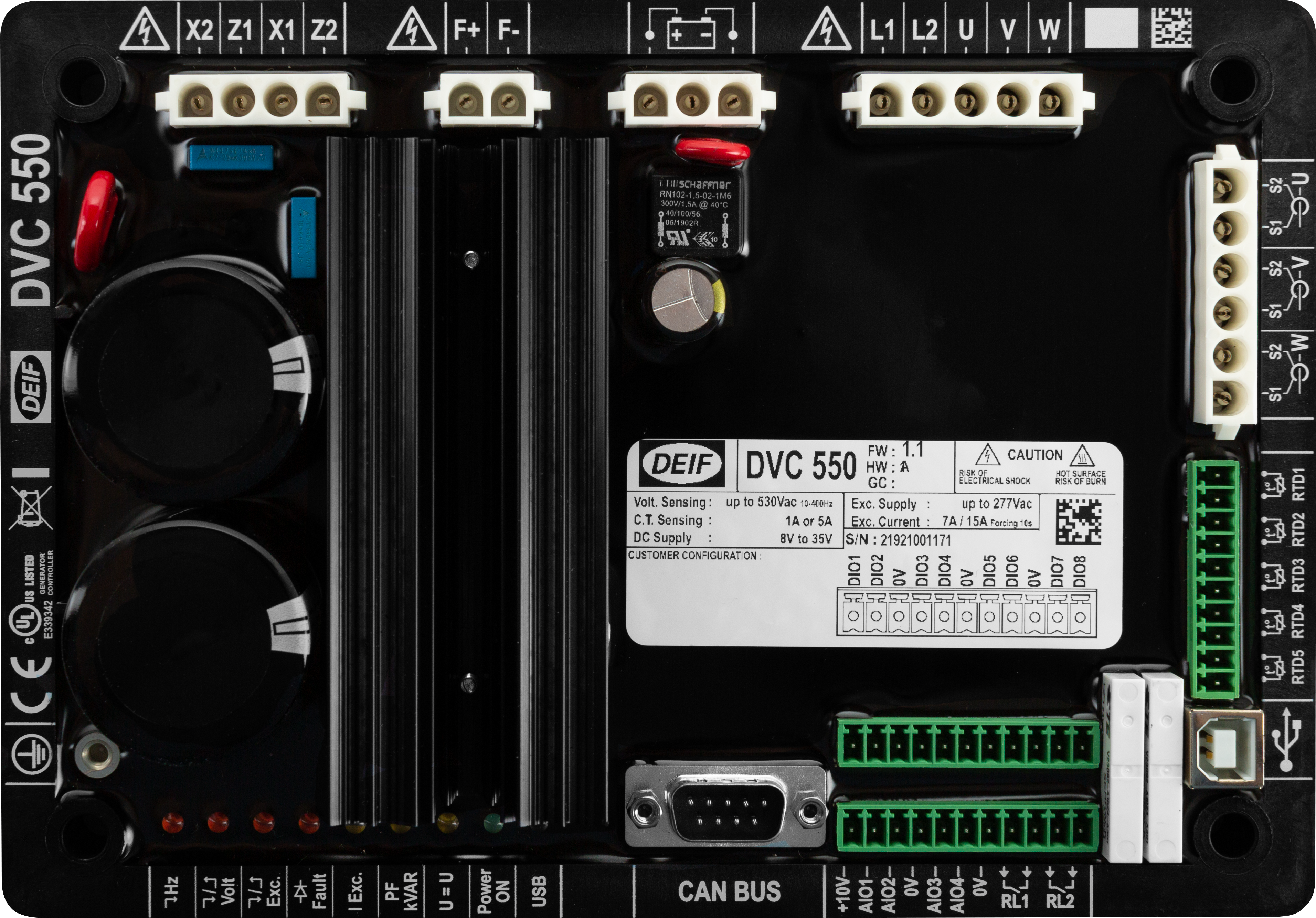 De DVC-550 is een digitale spanningsregelaar die de uitgang van de generator bewaakt en regelt met een nominale veldstroom tot 7 A en tot 277 V AC. De DVC-550 helpt de prestaties van het aggregaat verbeteren, is geschikt voor elke toepassing in de segmenten kritisch vermogen, IPP en verhuur en is eenvoudig te besturen via Canbus met AGC-4 en AGC-150.